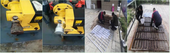 11、污水处理设备加药泵与不锈钢栏除锈补漆