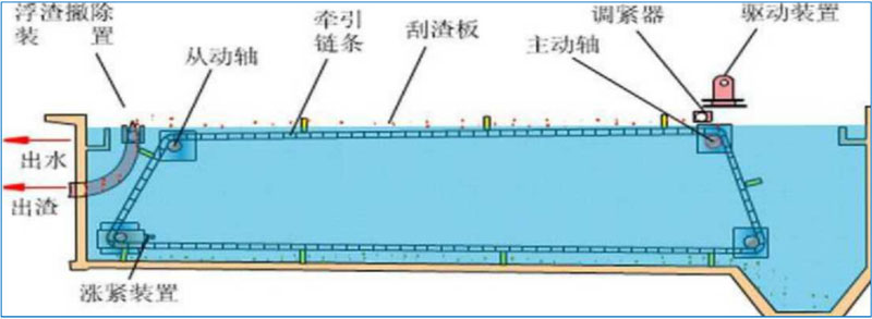 平流式沉淀池:平流式沉砂池实际上是一个比人流渠道和出流渠道宽而深的渠道,当污水流过时,由于过水断面增大,水流速度下降,废水中夹带的无机颗粒在重力的作用下下沉从而达到分离水中无机颗粒的目的。