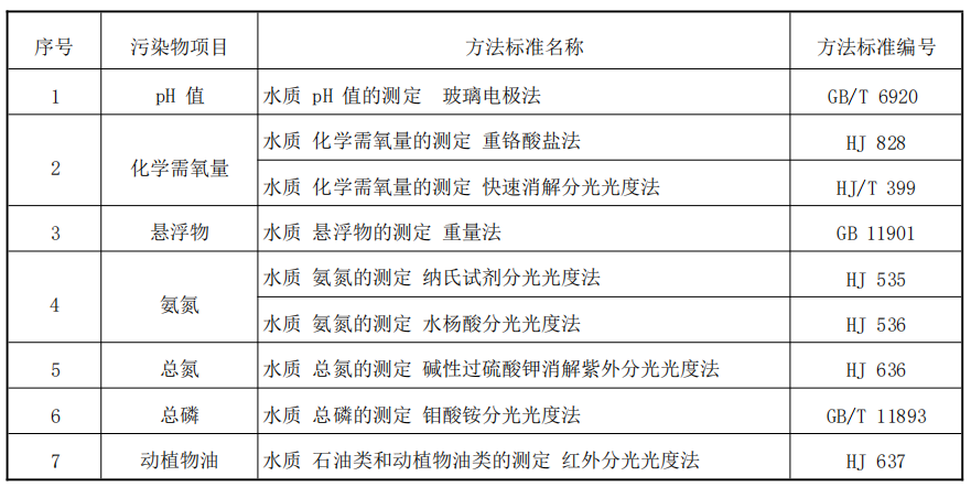 6.4 水污染物监测分析方法按表 3 所列方法标准或国家认定的其他等效方法标准执行。本标准发布实施后,有新发布的国家环境监测分析方法标准,其方法适用范围相同的,也适用于本标准对应污染物的测定。